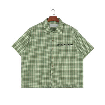 Kafany Garment Staff Clerk Trabalho Uniforme Logotipo Personalizado Vestuário Tecido Verifique Tecido Manga Curta Plaid Botton up Shirt